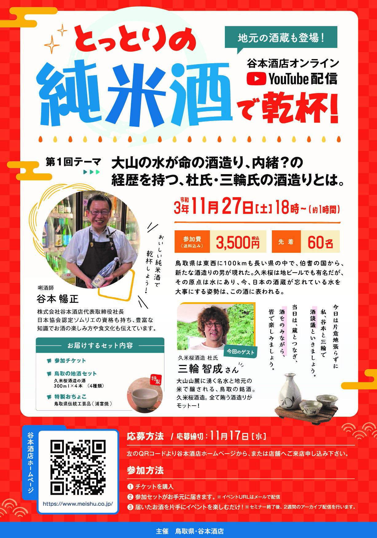 「とっとりの純米酒で乾杯!」を開催いたします。
