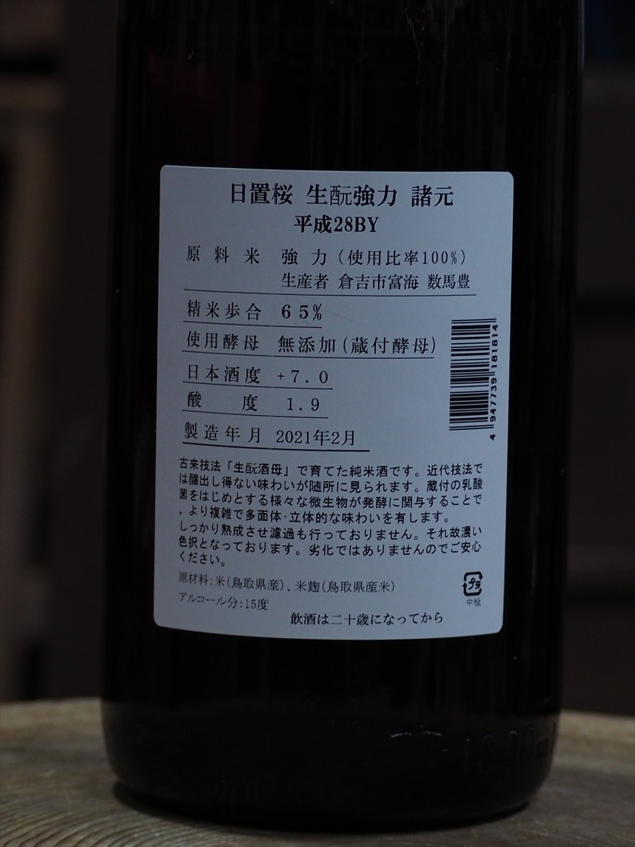 山根酒造場 日置桜 生酛強力  H28BY 1.8L